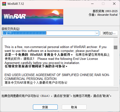 1、在代码网下载站下载最新版的winrar软件安装包,双击运行。之后就会打开安装向导界面,在这里你可以直接点击安装,这里要提醒大家一下的是默认是安装在c盘目录下的。如果不想占用太多系统盘资源,你可以点击路径后面的浏览按钮,为winrar解压缩工具选择一个合适的安装位置。