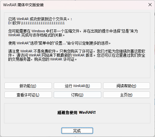 3、最后等待winrar工具安装即可,安装完成点击【完成】退出安装向导。这样我们的winrar软件就安装好啦,可以使用它解压缩文件了。