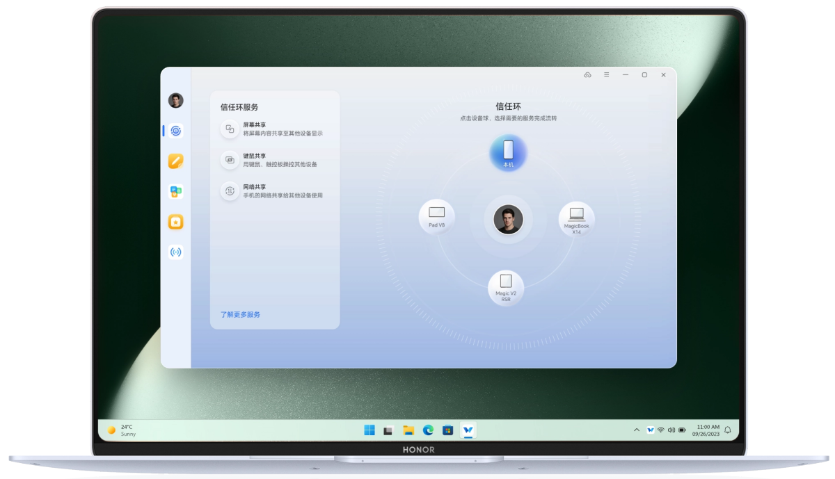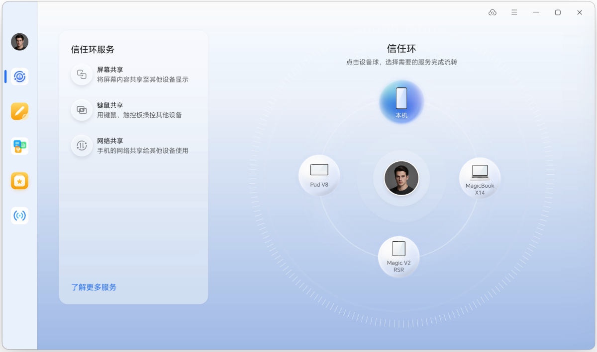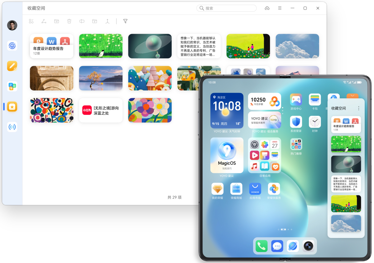 荣耀超级工作台一站式办公空间,聚焦windows办公场景,在windows端为用户提供全局互联与聚合办公服务。实现windows电脑与荣耀设备互联互通,与荣耀笔记数据互通,与荣耀设备免流高速传输等,更多功能持续更新。