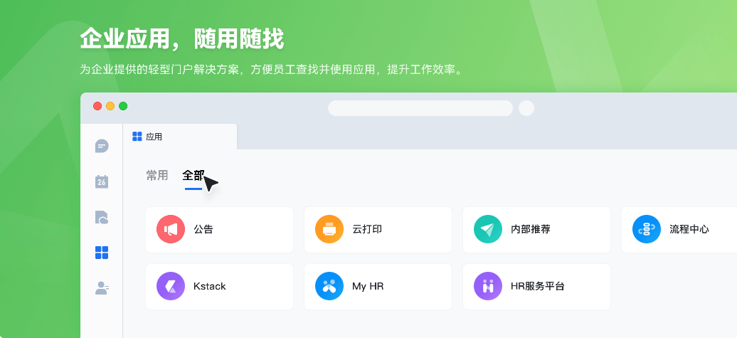 为企业提供的轻型门户解决方案,方便员工查找并使用应用,提升工作效率。