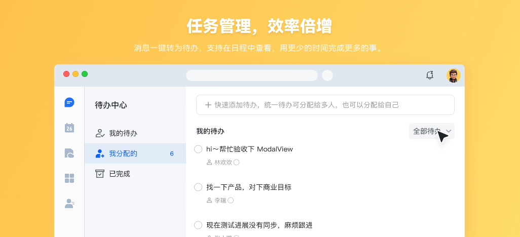消息一键转为待办,支持在日程中查看,用更少的时间完成更多的事。