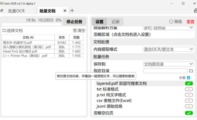 支持输出为双层可搜索的 pdf 文件,方便后续编辑和查找。