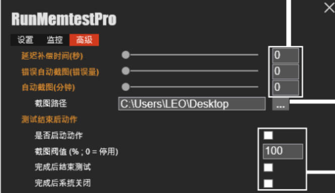 参数灵活调整:用户可自定义延迟补偿时间、自动截图间隔、测试结束后动作(如关机、重启)等,满足个性化测试需求。