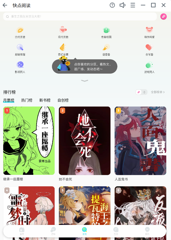 快点阅读软件自动下载安装,安装完成后可以在本软件追自己喜欢的小说啦。