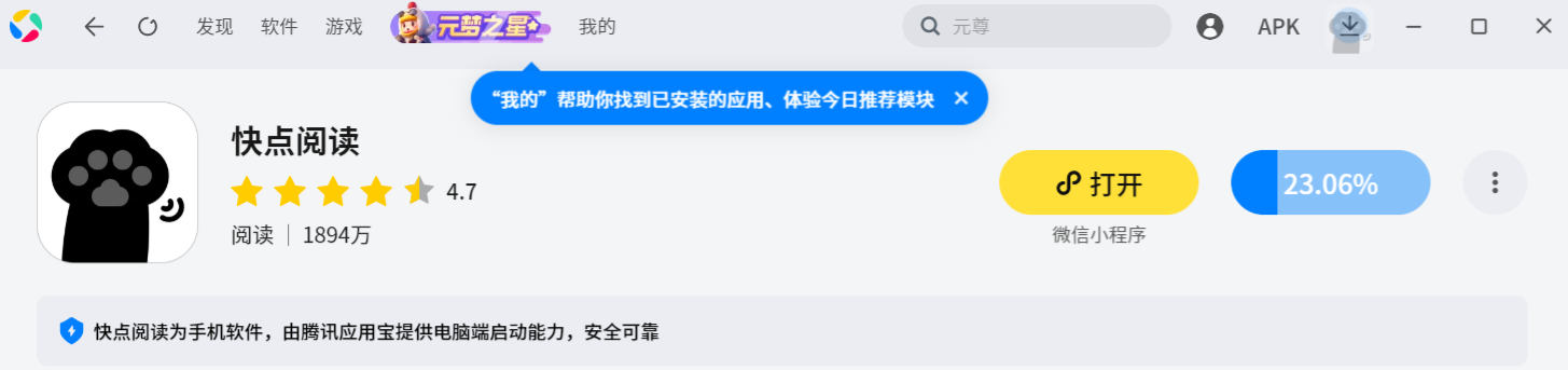 首先在电脑上下载应用宝,若电脑已有应用宝,点击“安装完成”;