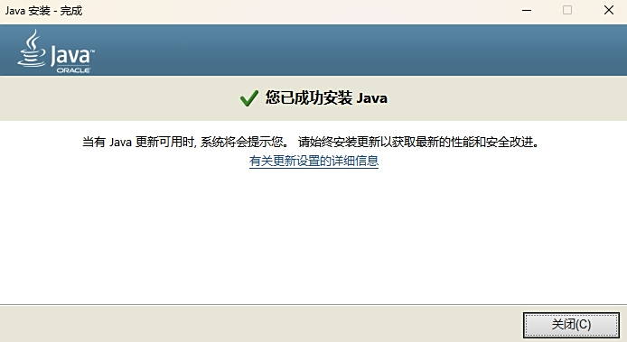 4、java官网版安装完毕,点击“关闭”使用即可。
