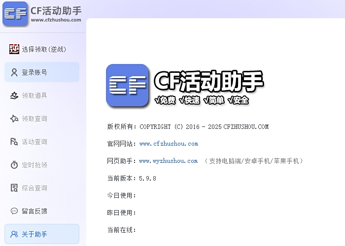 cf活动助手是一款专门为cf玩家打造的cf活动领取助手,功能强大,可以帮助玩家自动参加cf官方活动、领取礼品等。cf活动助手官方版,一款专门为上班族、学生族开发的软件。上班太忙、正在上课,没有时间关注官方活动,cf活动助手官方版帮助轻松解决这个问题。永久免费的cf/cfhd/逆战活动一键领取活动助手。