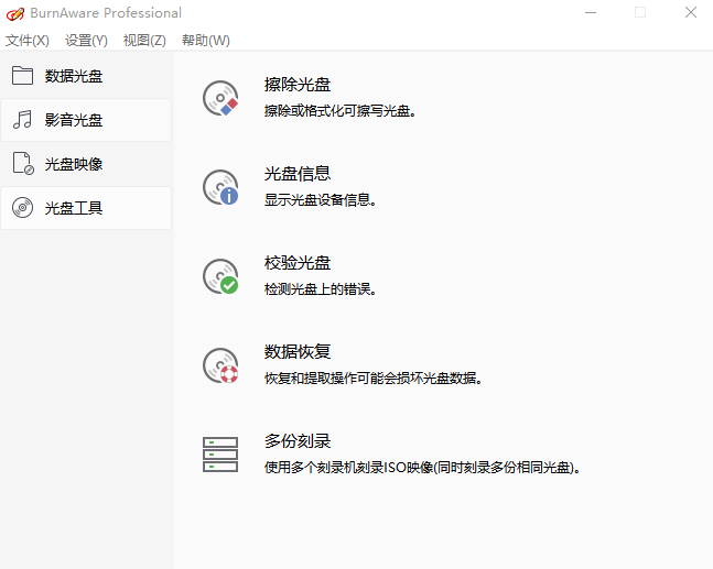 burnaware是一款轻量级的,便捷实用的光盘刻录工具。burnaware支持cd/dvd/蓝光/hd-dvd光盘,软件同时适用于高级用户和初级用户。burnaware软件内置的功能十分的强大,并且操作的界面也是十分的简洁明晰、使用起来也是方便快捷,并且软件拥有中文版的语言界面,实测能完美支持各种的系统。