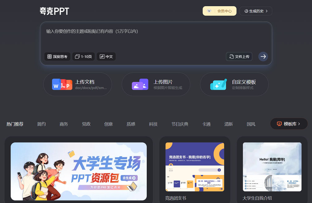 ●夸克ppt:超多模板,自动排版填充;新增图片ppt生成功能;(2025年10月新功能)
