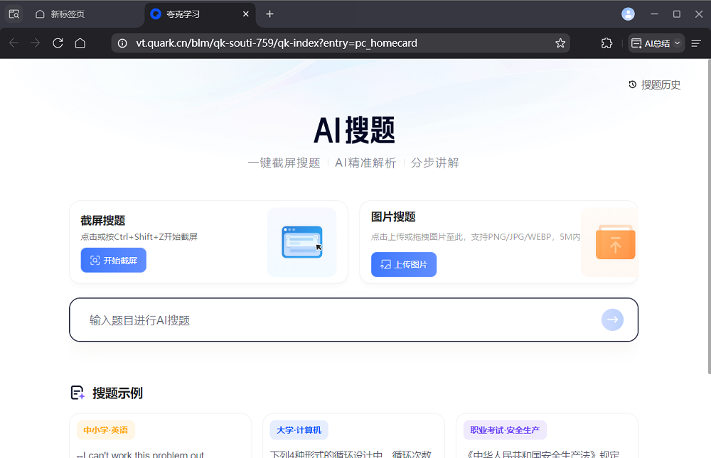 9、ai搜题:可一键截屏搜题;可图片搜题;可输入题目;ai会精准解析、分步讲解;