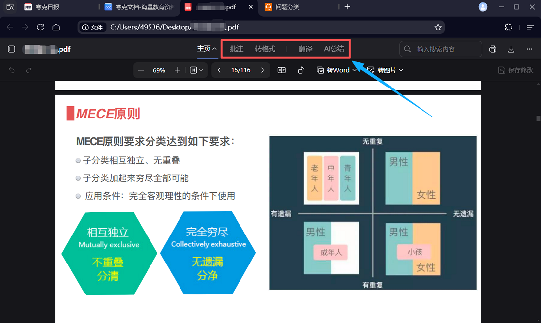 可以把夸克当pdf编辑器阅读器用:支持阅读、批注、编辑、转格式、ai翻译、ai总结