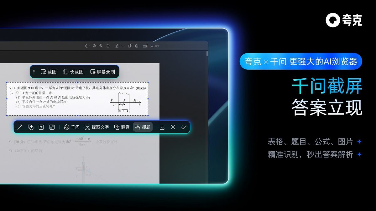 夸克浏览器是阿里旗下ai旗舰软件,能为你带来极速、智能、安全、高效的搜索体验,找答案、找资料、找工具、办公、学习、工作必备pc端软件,是新一代ai浏览器。夸克提供浏览器搜索引擎、ai搜索、ai编程、ai生图生视频、aippt、本地播放器、pdf编辑、ai阅读总结、ai写作、录音纪要、翻译、网盘、ai扫描王工具及小说阅读等高效功能,为你提供稳定,安全,流畅的浏览环境和优质的产品服务体验。2025年11月26日,夸克ai浏览器全面融合千问ai助手,实现「操作系统级」的 全局ai体验。使用桌面悬浮球可实时伴你左右。