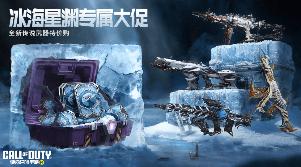 ●此外,冰海星渊专属大促正火热进行中,战士们可以在活动页面以超值折扣价购买【冰海星渊专属使命卡片】哦,可用在【永恒邀约】、【冰魄熔心】、【寒山雪影】、【雾凇冰凌】四个传说武器活动中代替使命卡片进行抽奖,千万别忘记啦。