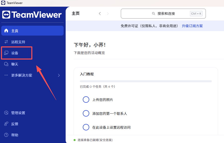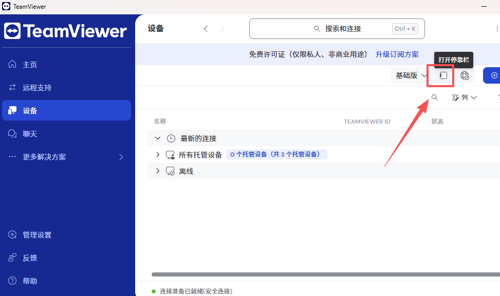 1、打开teamviewer,点击【设备】。